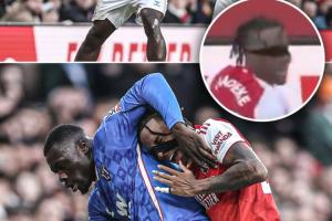 比赛中,布罗比和马杜埃凯争抢球权,扯掉了后者的发带。马杜埃凯无奈摊手